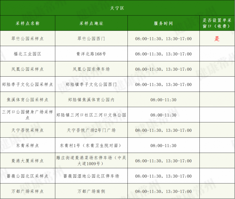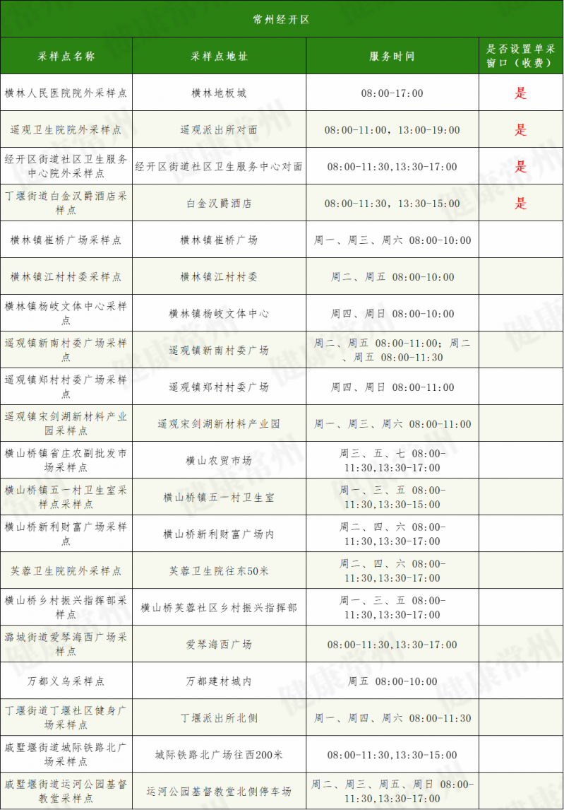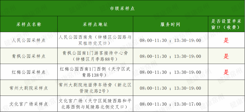 | 设单采窗口、服务时间调整……12月11日起,常州市便民核酸采样点最新安排 |