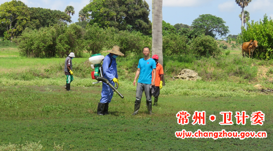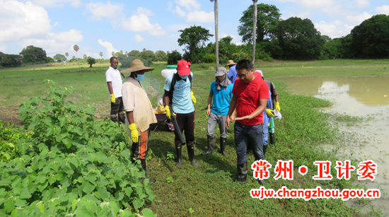 3月是奔巴岛的旱季,降雨较少,很多水塘缺水或者呈干涸状态,没有水源就不能使用悬浮剂灭螺。为了在雨季来临前对Uwandani示范区的水塘进行一次彻底灭螺,同时观察颗粒剂的灭螺效果,常州市疾控中心何明祯、金坛区疾控中心许大成与其他第三批援非队员决定使用颗粒剂对缺水的水塘开展灭螺。