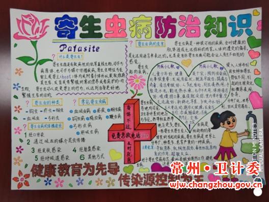 为了提高学生自我防护意识和能力,预防学生感染血吸虫病及常见寄生虫病,保护学生身心健康。同时,鼓励学生自觉、积极、主动参与血防及寄防工作,2018年5月,武进区疾控中心在武进区实验小学分校、嘉泽镇中心小学、戚墅堰实验小学三所小学举办了血吸虫病及寄生虫病防治专题手抄报评比竞赛活动。