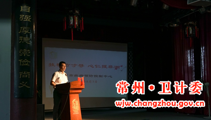8月3日,在市文明办和市卫生计生委联合指导下,常州市疾控中心主办的市级道德讲堂在市文化宫大成殿举行。常州市卫生计生委副书记何小茜,中心党委书记陶国忠等市卫生计生系统医疗单位分管领导、部分医务人员及市民150余人参加讲堂。道德讲堂由中心业务办副主任王正主持。