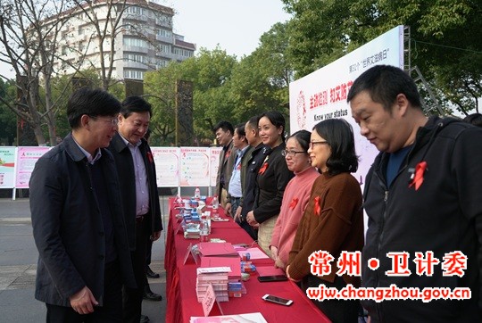 今年12月1日是第31个“世界艾滋病日”,我国“世界艾滋病日”宣传活动的主题为“主动检测,知艾防艾,共享健康”(英文主题为“Know your status”,知道你的感染状况)。由常州市政府艾滋病防治工作委员会办公室(简称“市艾防办”)、常州市卫生和计划生育委员会(简称“市卫生计生委”)主办,常州市疾病预防控制中心、天宁区卫生和计划生育局协办,常州市天宁区疾病预防控制中心承办的“世界艾滋病日”大型宣传活动于11月29日在红梅公园北大门清水平台成功举办,市艾防办、市卫生计生委、市城乡建设局、市人力资源和社会保障局、市教育局、市公安局、市总工会、市妇联、市红十字会、海关、市三院、市疾控中心、市中心血站、市药具站、天宁区卫生计生局、天宁区疾控中心等主要成员单位,参与了此次活动。常州市卫生计生委副主任张洪兵,天宁区副区长姚澄,常州市疾控中心主任吉俊敏和常州市红十字会副会长朱成凤等领导亲赴现场,对宣传活动给予重要指导,对宣传人员给予亲切慰问,并在艾滋病宣传签名墙上签字。