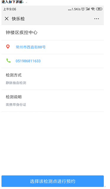现在以需要到钟楼区疾控中心检测为例,预约流程演示如下:
