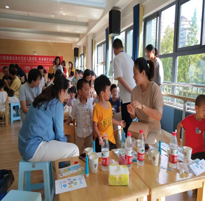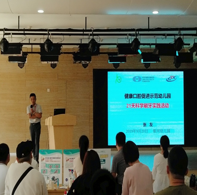 2019年9月20日,恰逢第31个“全国爱牙日”。常州市疾病预防控制中心、新北区疾病预防控制中心与银河幼儿园共同协作,通过自愿报名的方式,邀请50名幼儿园学生家长走进园区,开展了一场生动有趣的科学刷牙实践活动课堂。活动现场疾控中心工作人员通过PPT、视频和互动等多种形式阐述了口腔健康方面的知识,受到与会家长的好评。河海街道卫生服务中心的口腔医生为每一位参加现场活动小朋友检查口腔健康状况,建立口腔健康档案。培训完毕,小朋友和家长们分别进行了刷牙PK赛,现场气氛热烈,反映了家长们对小朋友口腔健康的重视。项目组为每个参与家庭免费投放了刷牙指导仪、牙刷和牙膏等材料,在后续的21天科学刷牙实践课程中,工作人员每天通过APP跟进小朋友的刷牙情况,测评刷牙效果和给予针对性指导,并通过家长微信群每天推送图文并茂的健康口腔知识小课堂。此外,由全国牙防基金会、市口腔医院、市疾控中心、区疾控中心及社区医院的相关专家、医务人员组成的团队在微信群中为家长和孩子提供健康口腔问题咨询,指导龋患儿童就诊等。
