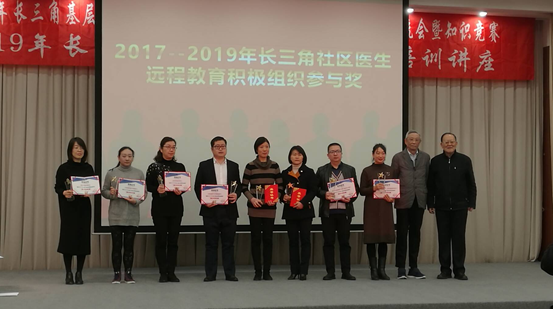会议由上海交通大学医学院附属瑞金医院高血压研究所所长王继光主持,上海交通大学医学院附属瑞金医院党委副书记俞郁萍、上海市卫健委基层卫生健康处副处长张天晔等领导发表重要讲话。浙江省、江苏省及上海市各地代表分别介绍各地的培训经验和建议。会上,王继光所长介绍了长三角二省一市远程教育概况并作了阶段性总结,期间对2017-2019年长三角地区优秀组织单位颁发了长三角基层医生远程教育积极组织奖。由于组织基层医生参加2017-2019年(三年)远程培训并取得很好的成绩,常州市疾控中心成为获此殊荣的江苏省三家单位之一。在竞赛环节,常州市的三位选手经过三轮近2小时的激烈角逐,获得二等奖。