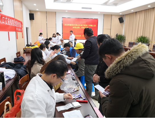 为加强对水利工程施工人员的健康监测,预防和控制血吸虫病等传染病的发生,2019年12月30日,常州市疾控中心血防所联合新北区疾控中心、奔牛镇人民医院赴奔牛镇新孟河施工现场,对新孟河奔牛枢纽工程施工队开展血吸虫、疟疾等查病和健康体检。本次查病体检,包含身高体重、血压、肝功能、血吸虫病、疟疾等项目,旨在为施工人员提供较全面的健康评估,保障施工人员的身体健康。通过全体人员共同努力,共收集96份血样,当天晚上就完成血吸虫、疟疾的检查,血吸虫血检共查出3份阳性,还需进一步收集粪便进行病原性检查,疟疾RDT检测均为阴性。在本次体检中,专业人员通过悬挂横幅、发放宣传折页等方式对施工队开展预防血吸虫病、艾滋病等知识的健康教育,受到施工人员的普遍欢迎。