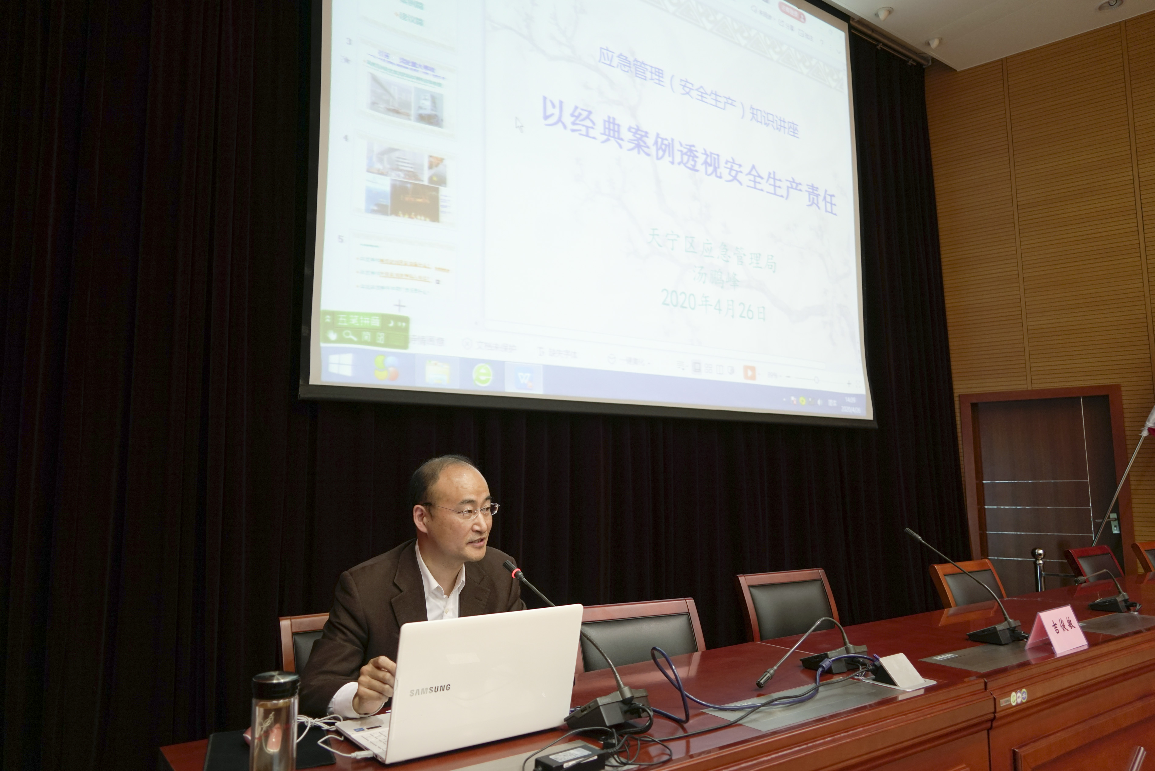 为推动单位深入贯彻落实《企业落实安全生产主体责任重点事项清单》,4月26日,常州市疾病预防控制中心主任吉俊敏就企业落实安全生产主体责任“春风行动”宣讲进行了总动员,他要求大家,树牢安全发展理念,生命至上安全第一,自觉把安全作为疾控事业发展的基石,贯穿到疾控各项工作各环节。要牢牢把握持续抓整改不放松、不达目的不放松的要求,通过学习,切实警醒反思、查缺补漏,切实抓好安全生产工作。会上市讲师团成员天宁区应急管理局副局长汤鹏峰为中心员工带来了一场安全生产宣讲培训会,“以经典案例透视安全生产责任”,“结合实例解读解析安全生产法律法规”,培训结束后,参训人员通过网络问卷测评对本次授课给出客观评价,提出意见建议。鲍东平副主任作了总结并对下一阶段安全生产工作作了部署。