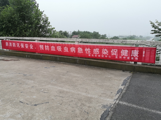 当前已是主汛期长江,同时也是急性血吸虫病的高发时段。为扎实做好防急感工作,7月14日,常州市疾控中心联合新北区疾控中心来到春江、魏村、孟河等沿江重点地区和长江堤防工程管理处,指导检查急性血吸虫病防控工作。此前,区疾控中心已经提前在重点部位统一树立警示牌,拉横幅宣传标语。指导检查组给三家乡镇医院发放了宣传折页、海报以及消杀物资,同时提出做好防急感培训,在门诊醒目位置摆放查病提示牌,防汛部门、沿江企业对涉水人员做好登记,一个月后如出现相关症状及时检查血吸虫病等相关要求。