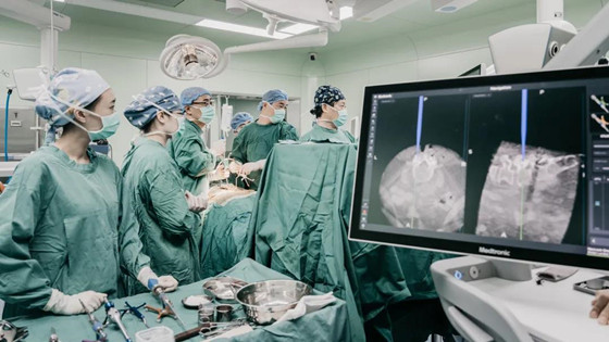 O型臂3D导航系统是利用最新引进的3D立体影像系统在术中为医生提供3D立体影像,在术前就可规划模拟出立体重组影像与各层面影像,为主刀医生计划最佳的手术路径。术中还可将患者放进仪器中,用完整360度自动环型扫描取像,从而即时更正路径规划与导航,避免伤害到周围的神经血管等重要器官组织,大大提高病人手术安全,准确定位,减少病患风险及并发症的发生。据统计,3D导航引导下的O-arm系统,能让医生手术视角更广、判读脊柱状况更精确,置入钢钉的准确度,也从原来传统开放手术的80%提升至100%,从而大大提高了手术安全性。