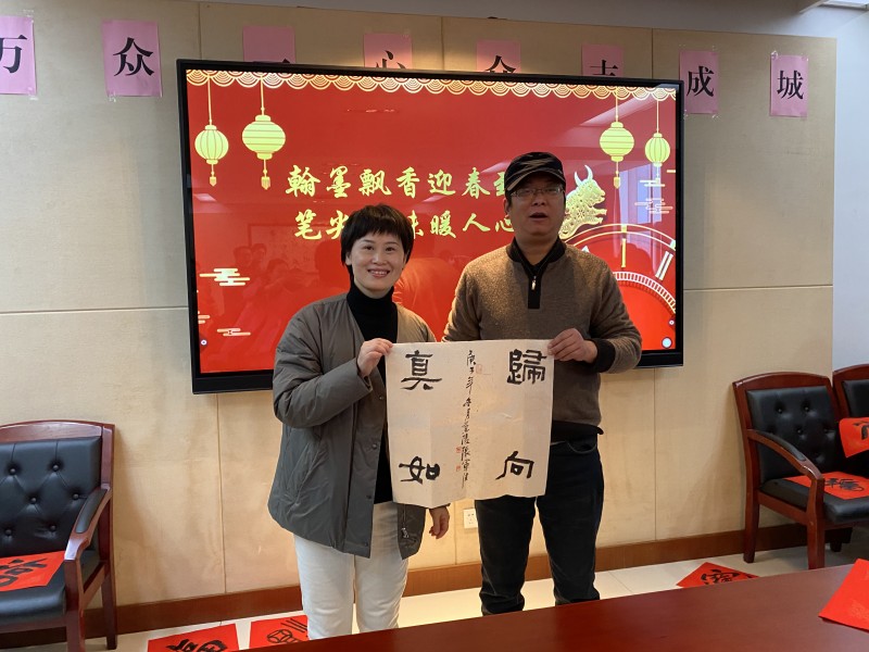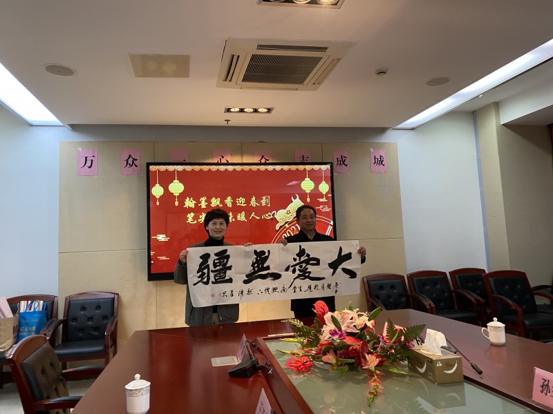 春节将至,2月2日上午常州市书法家协会陈清主席、张军佳副主席一行莅临常州市疾病预防控制中心,开展“迎春送福”的活动。中心党委副书记、纪委书记耿玲、中心副主任唐宏兵、徐文国、工会主席王亚龙、中心书法爱好者以及一线抗疫代表等参加此次活动。