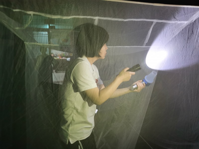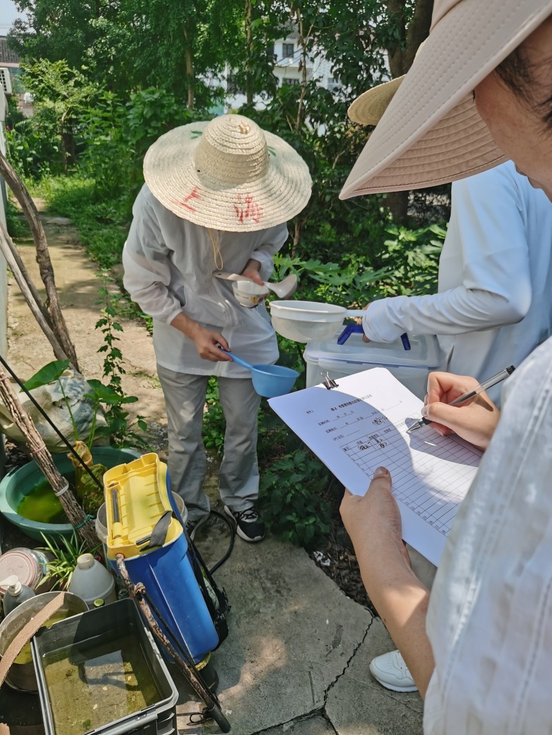 7月12日晚7点至12点,市疾控中心工作人员摆起了“八卦阵”,等待蚊虫入“阵”,以人诱蚊;7月15日白天,工作人员又顶着炎炎烈日挨家挨户检查积水容器,通过蚊虫孳生陷阱与布雷图指数法进行蚊媒种群和密度监测。