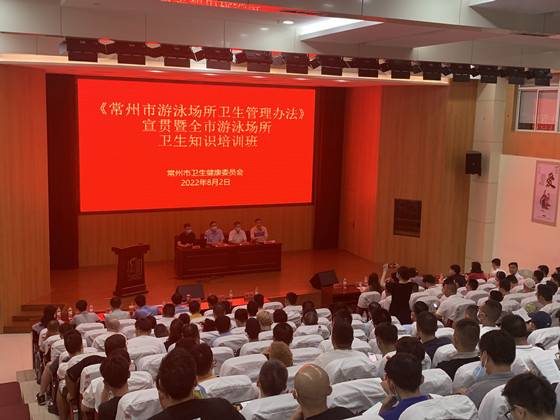常州市政府第6次常务会议审议通过了《常州市游泳场所卫生管理办法》,将于2022年8月15日起施行。2022年8月2日,常州市卫健委组织各辖市区卫健局分管局长和科室负责人,市及辖市区卫生监督所分管所长、科长、卫生监督员以及全市游泳场所经营单位负责人在常州卫生高等职业技术学校召开贯彻落实《常州市游泳场所卫生管理办法》暨游泳场所卫生知识培训会。会议由市卫生监督所副所长谈立峰主持。