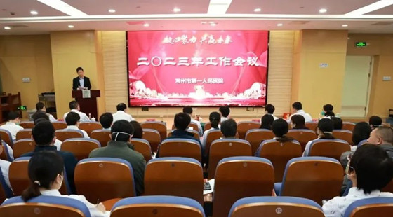 1月5日,常州一院在3号楼科学会堂召开2023年工作会议,全体院领导出席,各职能科室中层干部参加。院长周军主持会议。