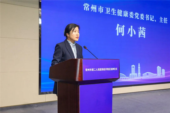 何小茜在致辞中指出,市二院和七院深度合作,挂牌成立市二院经开院区,是推动城市医疗集团建设走深走实,促进优质医疗资源均衡布局,提升常州东部地区医疗服务水平的重要举措。希望两家医疗机构以此为新起点,携手共进、并肩同行,充分发挥城市医疗集团作用,放大“1+1>2”叠加效用,在彰显特色、培塑品牌,互融互促、提升能力,联动赋能、携手惠民上为全市卫生健康事业高质量发展作出新的贡献。