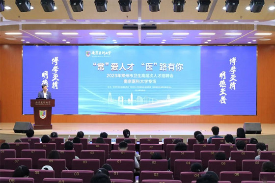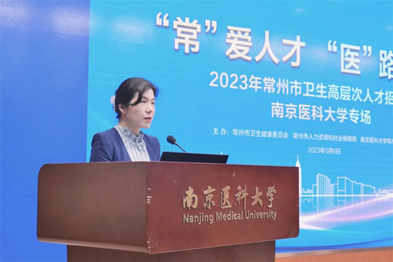 5月6日,常州市卫生健康委组织11家医疗卫生单位赴南京医科大学开展高层次人才招聘宣传推介活动。南京医科大学党委常委、副校长沈瑞林,常州市卫生健康委党委书记、主任何小茜出席活动并讲话。南京医科大学学生工作处处长林炜、校长办公室副主任李正关、常州医学中心副主任鲁明、常州市中医药管理局副局长程逸文参加会议。