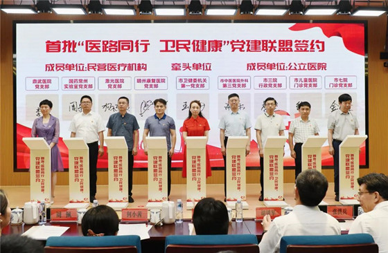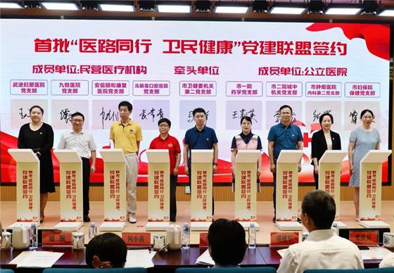 首批18家联盟共建成员单位按照“1个市卫健委机关党支部+1个市级公立医院党支部+1个市级民营医疗机构党支部”的模式,签订了联盟共建协议。