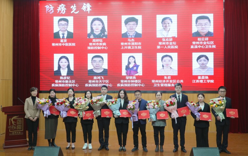 常州市疾病预防控制中心党委书记、主任姚昉为防痨先锋颁奖并送上鲜花。