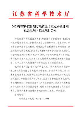 常州市疾控中心首次获批1项江苏省重点研发计划社会发展项目