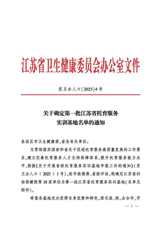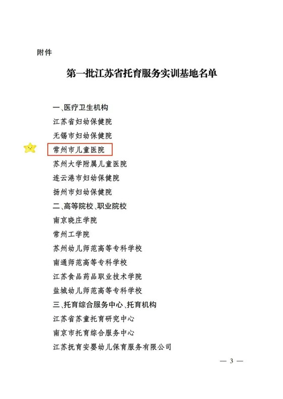 近日,常州市儿童医院通过江苏省卫生健康委员会的评审,获评为首批“江苏省托育服务实训基地”!