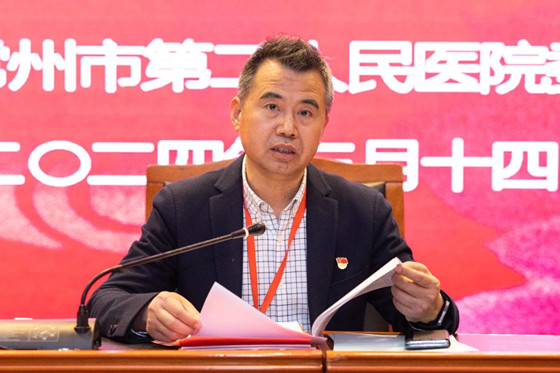 常州二院党委书记秦锡虎作2023年度党建工作报告。报告回顾总结2023年党建工作情况,研究部署2024年党建目标任务,动员全院广大党员干部职工铆足干劲、笃行实干,为加快推进卫生健康事业高质量发展、促进医院改革创新再添新活力。