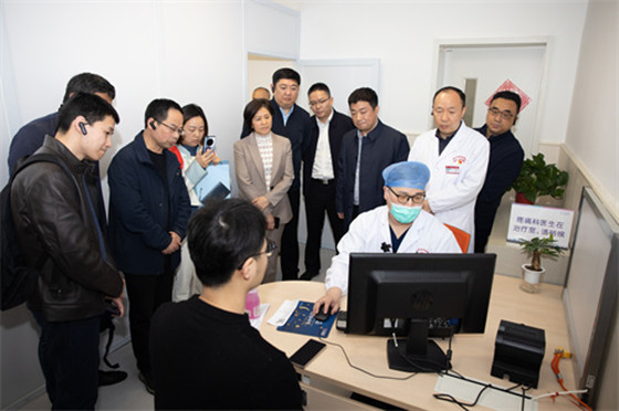 副院长肖春华介绍“先看病后付费”信用就医、医学影像云服务和影像检查互认在医院的落地和实施过程,并且在门诊疼痛科和放射科进行全流程演示。随后考察组与陪同人员开展了关于“信用就医”“医学影像云”服务的深度交流,常州市卫健委信息处处长许辛夷作相关汇报。