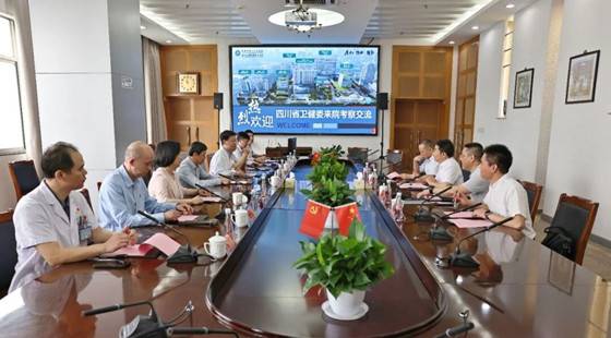 5月31日,四川省卫健委党组成员、副主任赵汝鹏一行来到常州一院,考察交流智慧影像平台、互联网医院及医联体互联互通应用建设工作。江苏省卫生健康委规划信息处二级调研员管正涛,常州市卫健委党委委员、市中医药管理局副局长程逸文参加,常州一院院长周军、副院长邵耐远及相关职能科室负责人陪同。
