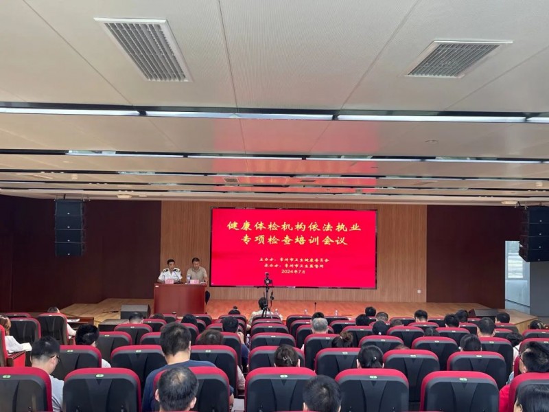 为进一步提高健康体检机构依法执业水平,规范医疗卫生机构健康体检管理和服务,提高健康体检质量。根据全省健康体检机构依法执业专项检查相关部署要求,全市健康体检机构依法执业专项检查培训会议于2024年7月25日在常州市卫生监督所召开。各辖市、区卫健局、卫生监督机构、健康体检医疗机构相关负责人参加了此次培训。市卫生健康委员会综合监督处处长陈文宇出席会议并讲话。市卫生监督所副所长冯国柱主持会议。