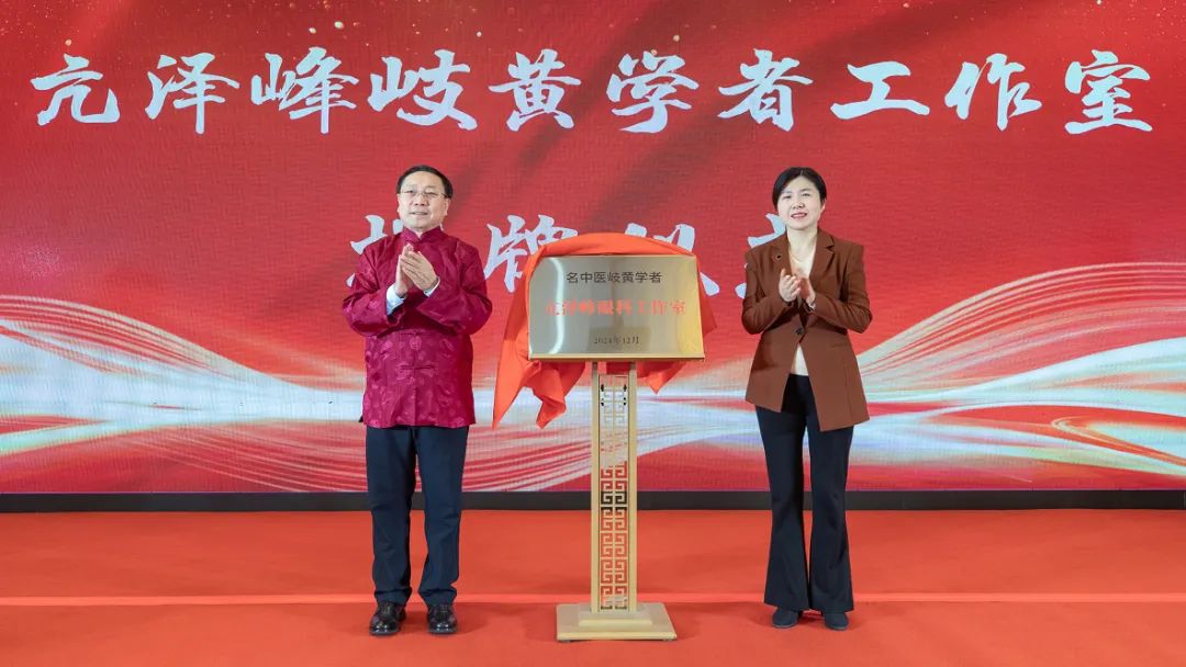 岐黄学者、中华中医药学会理事兼眼科分会主任委员亢泽峰教授与常州市卫生健康委党委书记、主任何小茜共同为“名中医岐黄学者亢泽峰眼科工作室”揭牌。
