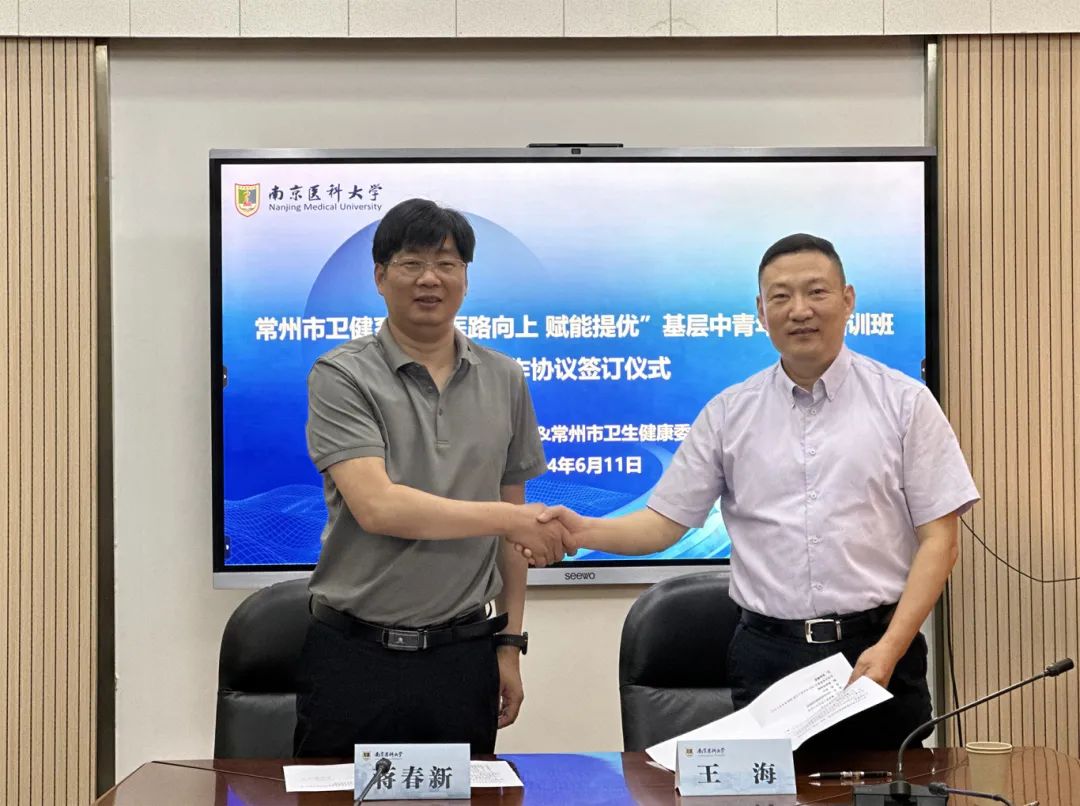 近日,常州市卫生健康委与南京医科大学全科医学院举行“医路向上 赋能提优”基层中青年骨干培训项目签约仪式。常州市卫生健康委副主任蒋春新、南医大全科医学院院长王海参加签约仪式。