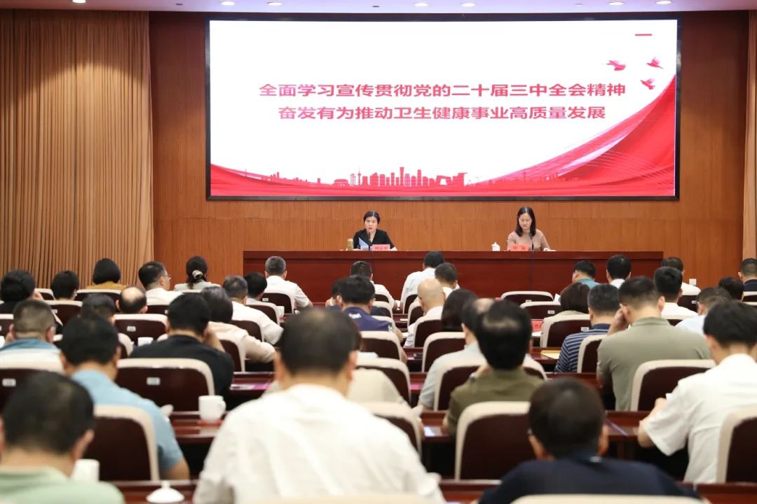 9月11日学习贯彻党的二十届三中全会精神卫健系统专场宣讲报告会在市行政中心群贤堂举行。市委宣讲团成员、市卫生健康委党委书记、主任何小茜作宣讲报告。