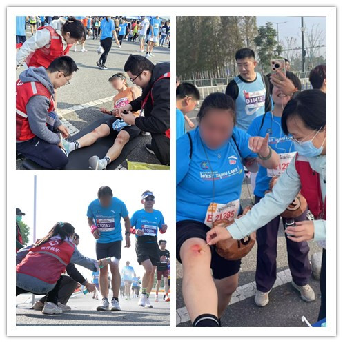 早上7:30鸣枪开跑后,数万名参赛选手涌向赛道、奋力争先,面对赛道上发生的运动员肌肉痉挛、低血糖、扭伤、摔伤等需要进行医疗处置的情况,医务人员及时接诊,精准处置,各医疗联动部门有条不紊开展现场指挥调度。