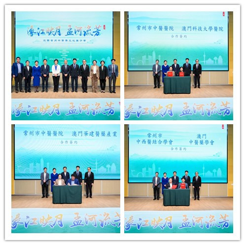 为推动常州-澳门中医药交流合作,常州市中医医院分别与澳门科技大学医院、澳门华建医药产业;常州市中西医结合学会与澳门中医药学会签署合作意向书。