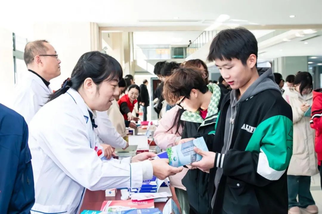艾滋病防治相关单位在行政楼大厅为学生们发放了宣传资料和宣传品,并现场宣贯艾滋病防治知识。