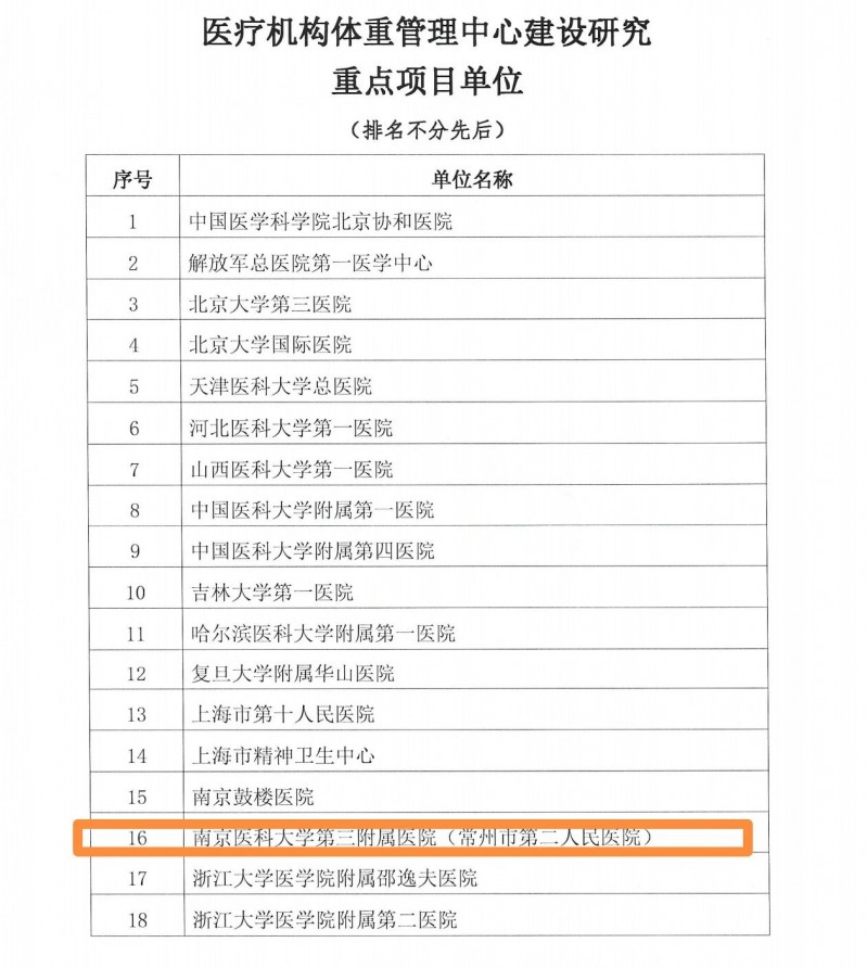 9月12日,国家卫生健康委医院管理研究所公布了“医疗机构体重管理中心建设研究重点项目单位”和“医疗机构体重管理中心建设研究项目单位”名单。常州二院从全国近600家申报单位中脱颖而出,获评“医疗机构体重管理中心建设研究重点项目单位”。据了解,本次评选,共有中国医学科学院北京协和医院等40家单位获评重点项目单位,北京大学第一医院等100家单位获评项目单位。江苏省仅有两家单位获评重点项目单位,分别是南京鼓楼医院、常州二院。