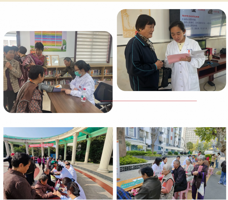 10月28日当天,临床第一党支部、临床第三党支部分别组织了呼吸内科、心血管内科、神经外科、乳腺外科、妇科、骨科、老年医学科等科室医务人员走进横林镇下塘社区、戚墅堰街道东方社区开展健康义诊,心血管内科和骨科医务人员还走进横山桥镇五一村委进行健康科普讲座。